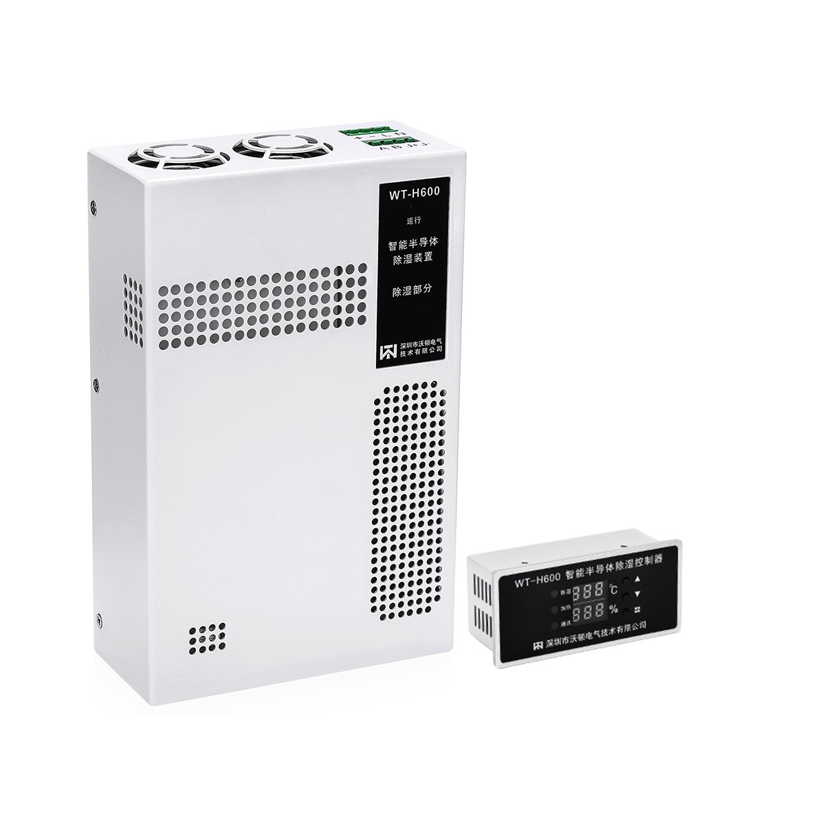 Wt-h600 split semiconductor cooling and dehumidification device is based on thermoelectric refrigeration to cool the water molecules in the air below the dew point temperature to achieve the purpose of dehumidification. Compared with the traditional dehumidification technology, it has the characteristics of small volume, high stability, no refrigerant and desiccant, environment-friendly and so on.